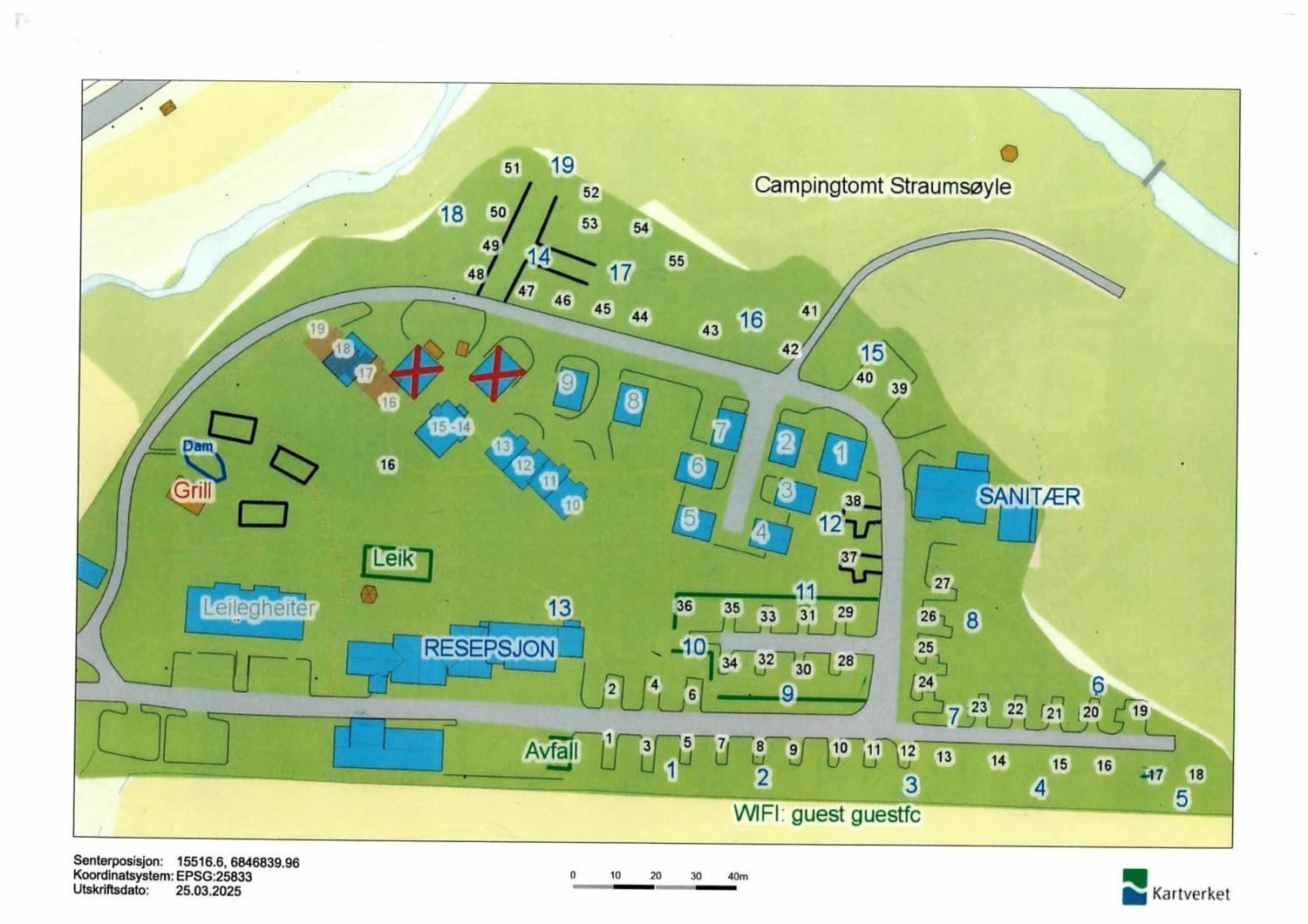 Området vårt er godt egna til å ta imot små og store bilar/vogner og gjestane har valet mellom parkering med eller utan straum. Vi har sanitæranlegg med dusjar og wc, handikaptoalett m/dusj, eit kjøkken og eit vaskerom med vaskemaskiner og tørketrommel.